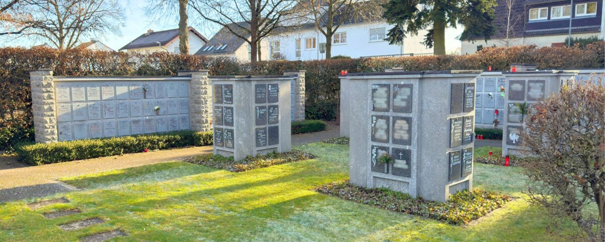 - Bei dieser Grabart handelt es sich um eine Urnenbeisetzung in einer pflegefreien Urnenkammer oder Urnenwand.