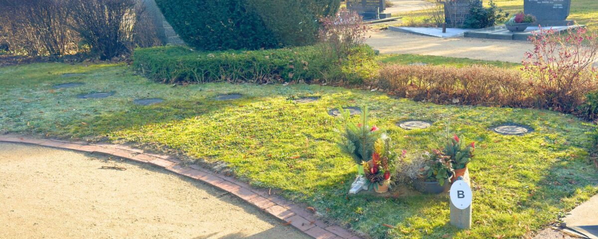 - Bei dieser Grabart handelt es sich um eine Urnenbeisetzung in einem pflegefreien Wiesengrab.